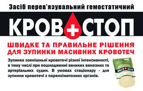 Засіб перев'язне КРОВОСТОП за своїми характеристиками є аналогом ГЕМОСТОПА, але виробляється в Україні.
