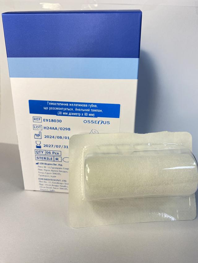 Тампон гемостатичний ТМ Osseous 30 мм Dia x 80мм (Анальний), EON Meditech Pvt. Ltd., Індія